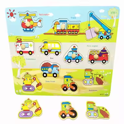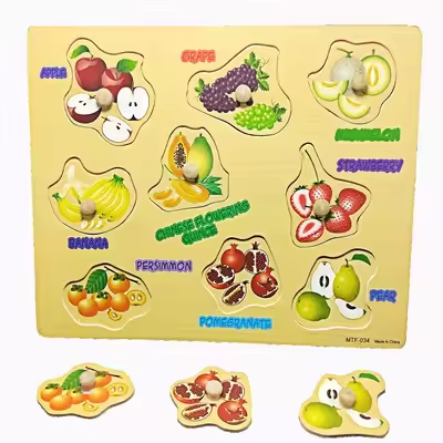 Wood Jigsaw Puzzle Hand Grab Wood Educational Toddlers Matching Toys